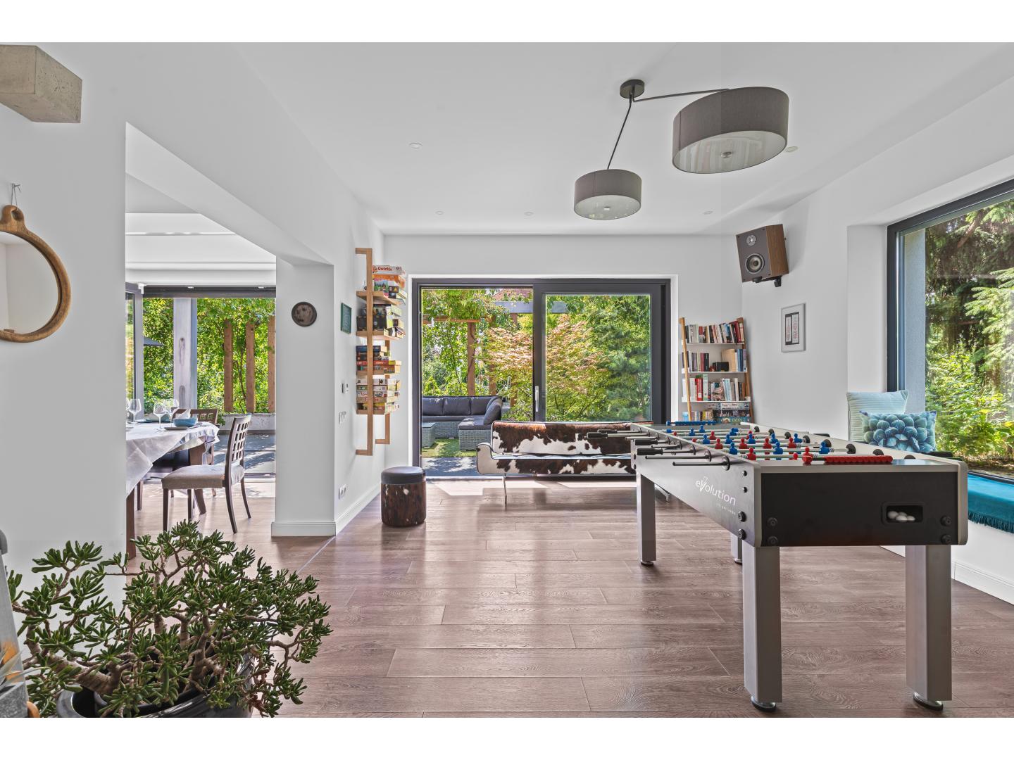Az alagsori részben egy projektoros mozi szoba és egy boros pince került kialakításra, de ha valakinek szükséges, ez a rész könnyedén vendég lakrésszé alakítható.