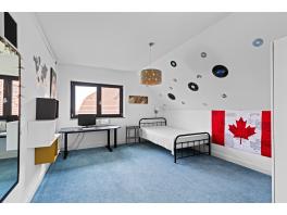 Az emeleti szinteken kerültek kialakításra a tágas hálószobák és a hozzájuk tartozó fürdőszobák, gardrób, mosókonyha, a szülői háló pedig saját fürdővel és gardróbbal rendelkezik, erről és a felette lévő tetőtéri szintről szép panoráma nyílik a városra.