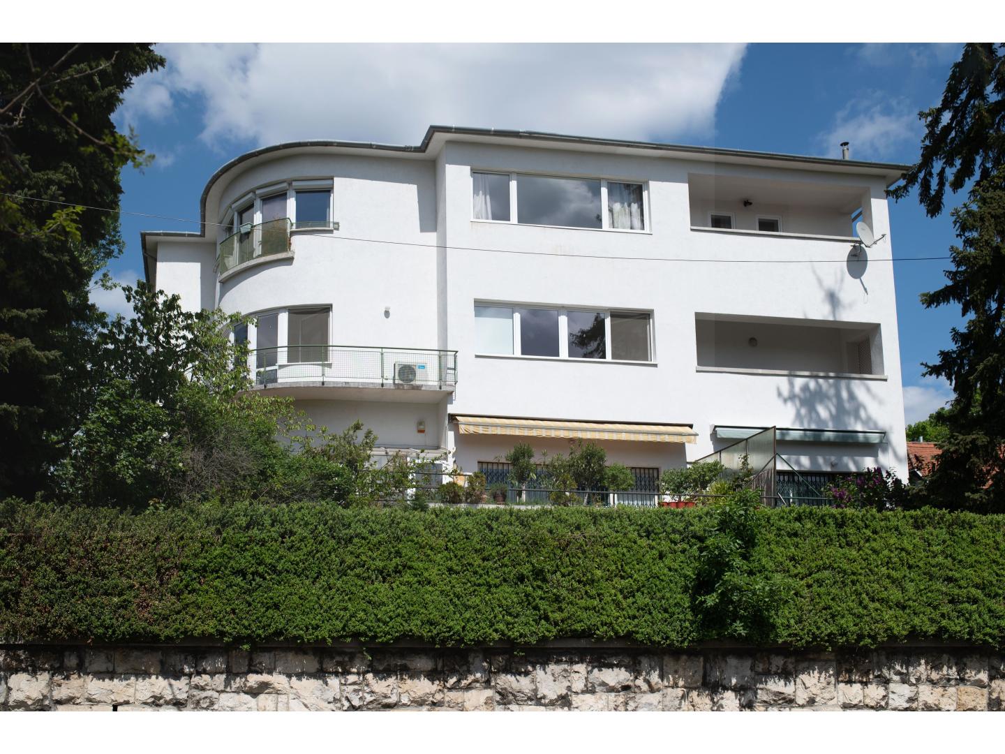 A II. kerület egyik legkedveltebb, zöldövezeti utcájában eladó egy különleges hangulatú, 102 négyzetméteres, panorámás otthon. Az épület, melynek második emeletén a lakás helyet kapott, nem csupán egy a sok budai villa közül: a házat a korszak egyik legnagyobb magyar építésze, Kozma Lajos tervezte, és minden részletében őrzi a klasszikus Bauhaus építészet letisztult, arányos és fényközpontú formavilágát.