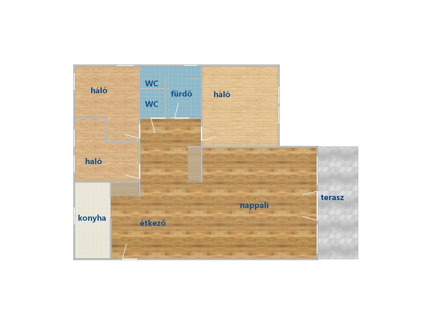 A jól átgondolt alaprajz kényelmet és praktikumot kínál: a tágas amerikai konyhás nappali természetes központja a mindennapoknak, ehhez három külön nyíló hálószoba, egy fürdőszoba káddal és zuhanyzóval, valamint egy különálló mellékhelyiség kapcsolódik, amely mosókonyhaként is funkcionál. A lakás az épület legfelső szintjén helyezkedik el, így nemcsak rendkívül világos és szellős, de a belső tereket egy plusz bevilágító ablak is gazdagítja, amely szükség esetén árnyékolható.