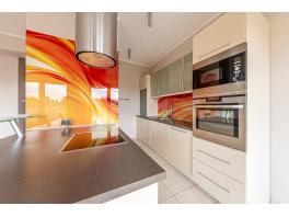A liftből kilépve, pár lépés a lakás ajtaja, amelyen ha belépünk egy előszobába érkezünk. Itt letehetjük a kabátokat, cipőket, majd balra fordulva a konyha –étkező-nappaliba léphetünk, - a hatalmas nyílászáróknak és a DÉLI tájolásnak köszönhetően napfényes, mindig világos. A konyha mellett jó méretű kamra található.