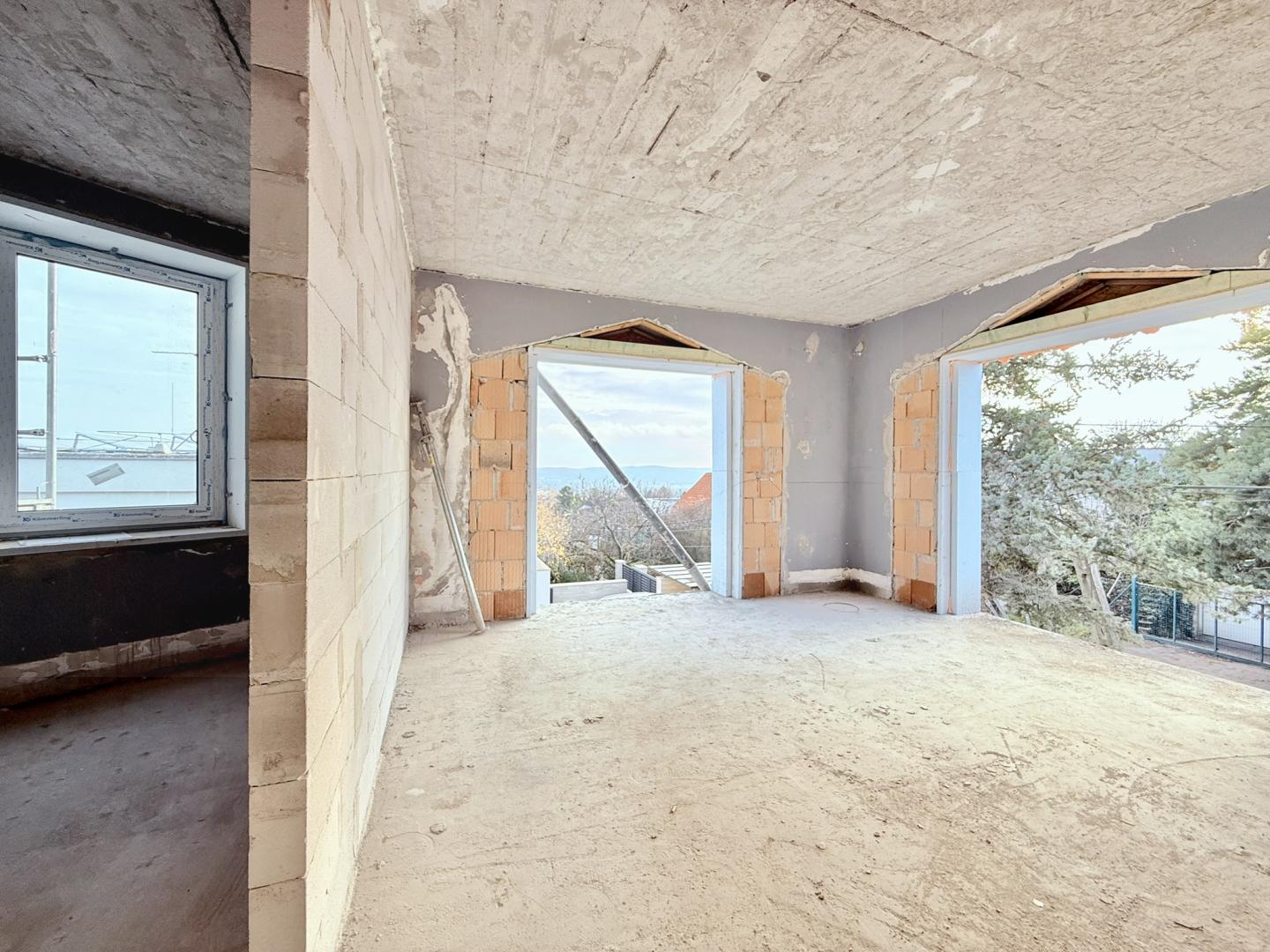 A rendkívül stabil, masszív alapokkal épült társasház a csendes, jó levegőjű mellékutca legfelső részén található, ami a terep adottságoknak köszönhetően gyönyörű panorámás kilátást biztosít a lakásokból, kiemelve az emeleti lakás felett található tetőteraszról elérhető extra körpanorámát.