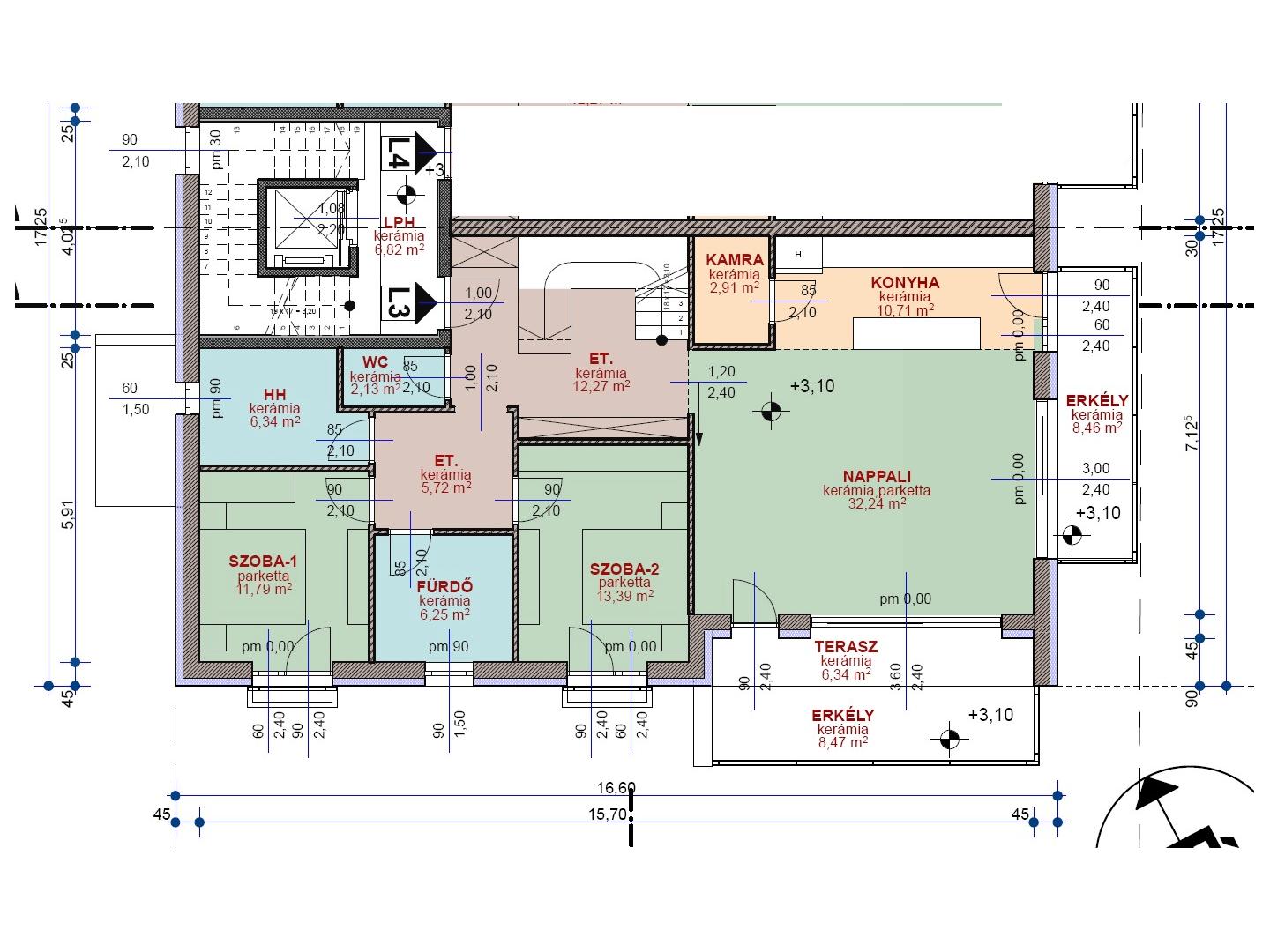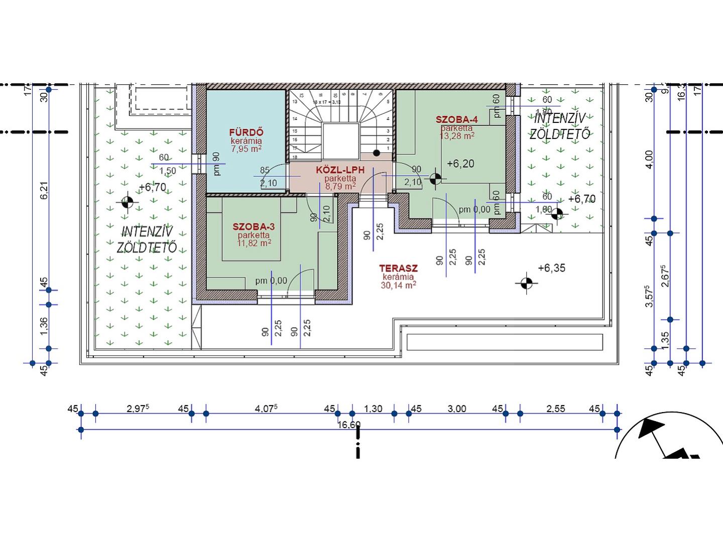 A felső szinten 2 egymástól távol eső hálószoba és fürdőszoba kerül kialakításra, ahol 30nm terasz növeli az életteret.