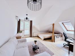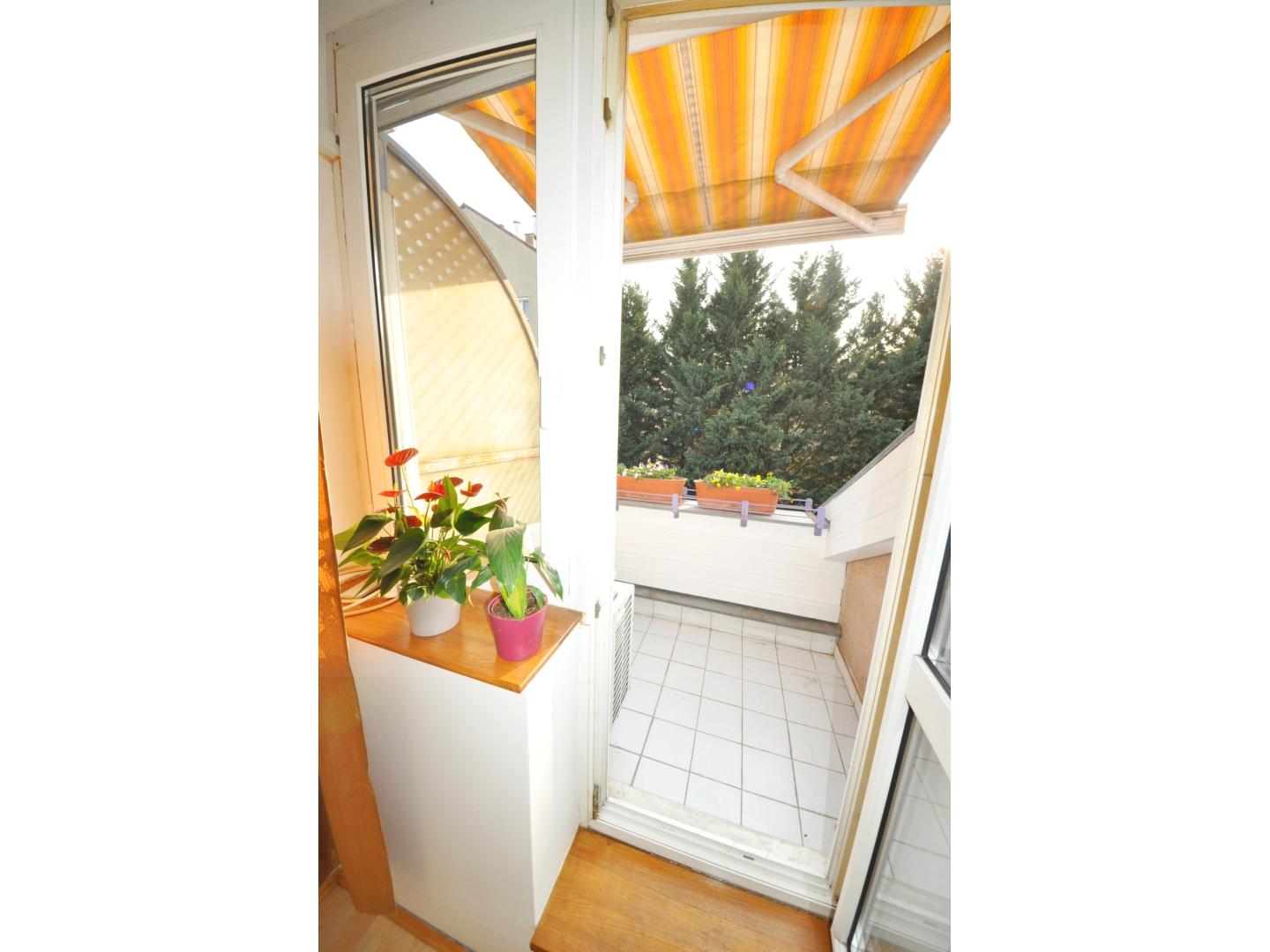 A lakás magas emeleti elhelyezkedésének és kertre néző tájolásának köszönhetően csendes, világos és szép kilátás nyílik a Németvölgy felé, Az erkély intim hangulatú, a zöld kertre néz, napos.