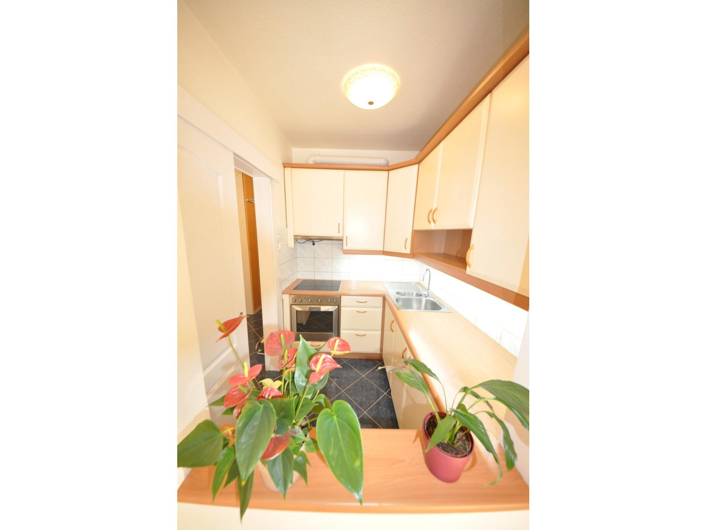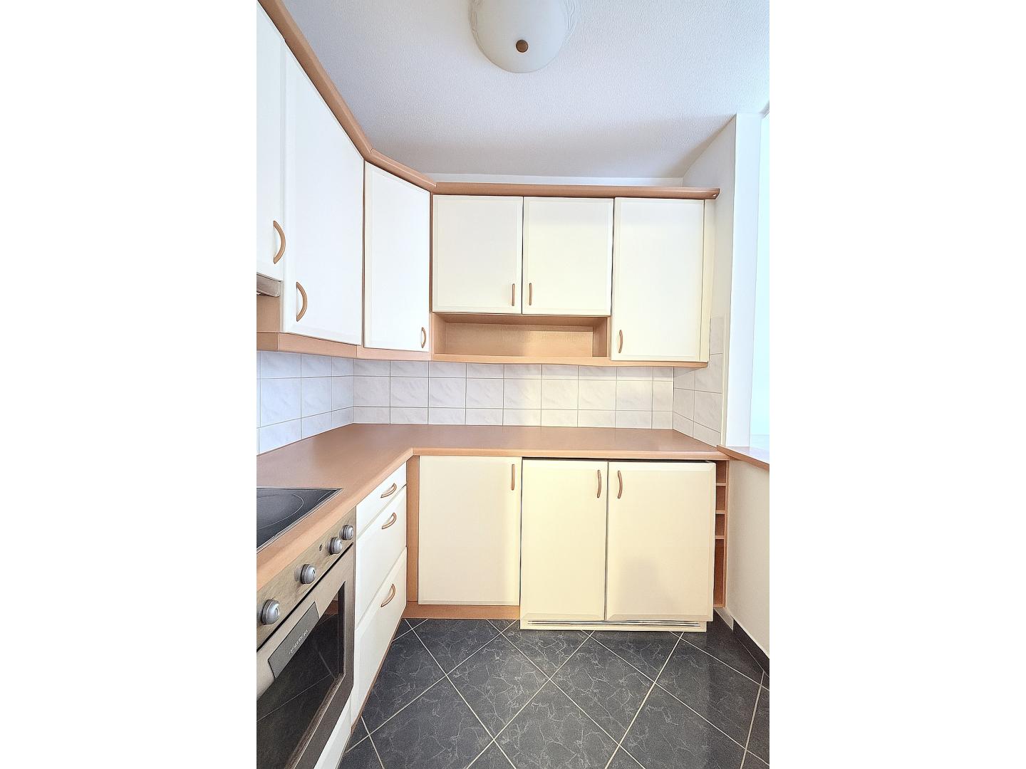 A konyha tágas, jó beosztású, praktikus átadóablakkal a szoba felé, ami igény esetén ablakkal lezárható.