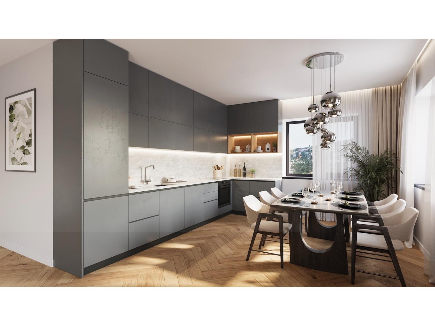 XII. kerület szívében, VIRÁNYOS könnyen megközelíthető, kiemelt zöldövezeti részén újépítésű, ALACSONY ENERGIAFELHASZNÁLÁSÚ, igényes kivitelezésű, panorámás LUXUSLAKÁSOK leköthetők! A csendes mellékutcában, panorámás, ősfás környezetben lévő 1250 nm-es telken elhelyezkedő épületben 6 lakás kerül kialakításra, szintenként két lakással. A 2026. őszére elkészülő lakások három és két hálószobás elrendezésűek, kellemes teraszkapcsolattal, a földszinti lakások saját használatú kerttel rendelkeznek. Az ingatlanfejlesztésben több mint 20 év tapasztalattal, számos referenciával rendelkező beruházó kivitelezései garantálják a minőséget és az elégedett vásárlókat. A lakások belső elrendezése a mai igényeknek megfelelő kényelmi szempontokat figyelembe véve kerül kialakításra, a lakások teljesen személyreszabhatóak, az alaprajztól a burkolatig. A legmodernebb műszaki megoldások és technológiák alkalmazása mellett az exkluzív anyaghasználat és a minőségi kivitelezés jellemzi a beruházást. Az ingatlan néhány fontosabb műszaki paramétere: központi levegő-víz rendszerű hőszivattyú biztosítja a fűtést, hűtést és a használati melegvíz-ellátást; mennyezet hűtés-fűtés, padlófűtéssel kiegészülve; okostelefonról vezérelhető, helyiségenkénti hőmérséklet szabályozás; modern, elegáns olasz dió Trespa homlokzat; három rétegű hőszigetelő üvegezésű külső nyílászárók 7 kamrás antracit SCHÜCO profillal; motoros zsaluzia okosvezérlés opcióval; prémium anyagok: olasz csempe, fafurnér parketta, Hansgrohe és Laufen szaniterek; videós kaputelefon; riasztórendszer előkészítés; platform az okosotthonhoz. Az épület alatti mélygarázsban lévő parkoló helyek (+ 12 MFt/db), felszíni beállók (+ 7 MFt/db) és tároló helyiségek is vásárolhatók. A zöldövezeti luxusingatlan csendes utcában, a XII. kerület jól megközelíthető részén kerül kialakításra, kényelmesen elérhető autóval és tömegközlekedéssel (villamos és busz) egyaránt. A közelben számos kiszolgáló egység: Budagyöngye Bevásárlóközpont, színvonalas éttermek; pékség, kávézó, élelmiszerüzlet; valamint jó nevű oktatási intézmények találhatóak. Részletes műszaki tartalmat és alaprajzokat kérésre küldünk.