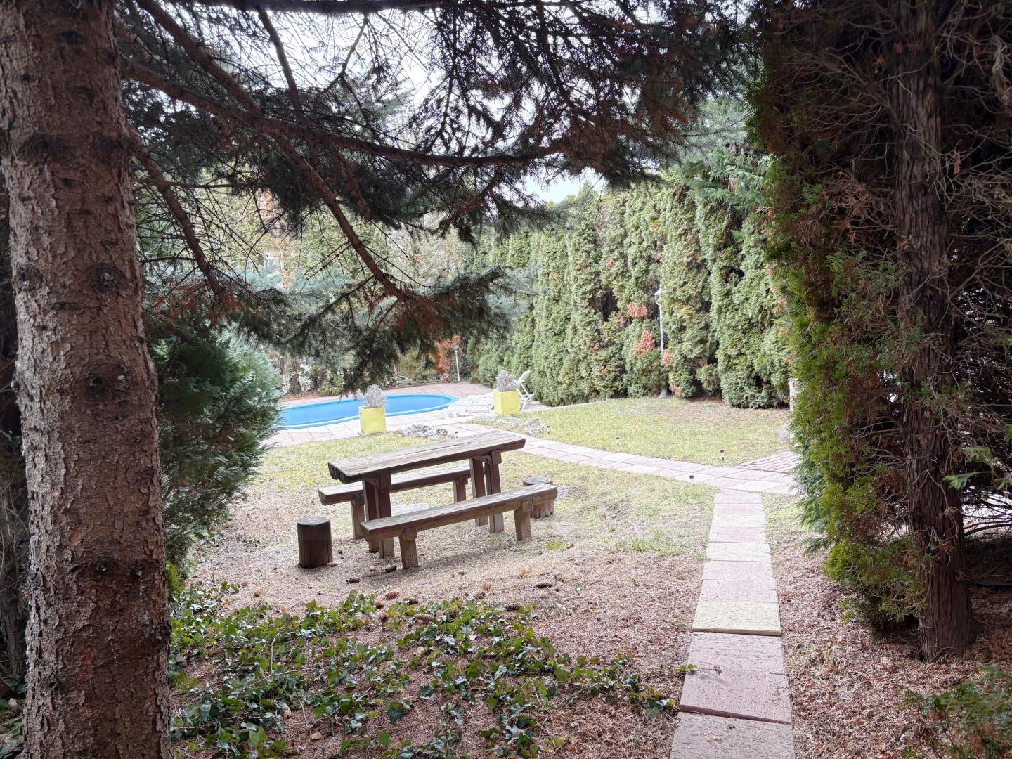 Az intim elhelyezkedésű, kellemes kertben medence, napozó, grillező szolgálja a lakók kényelmét.