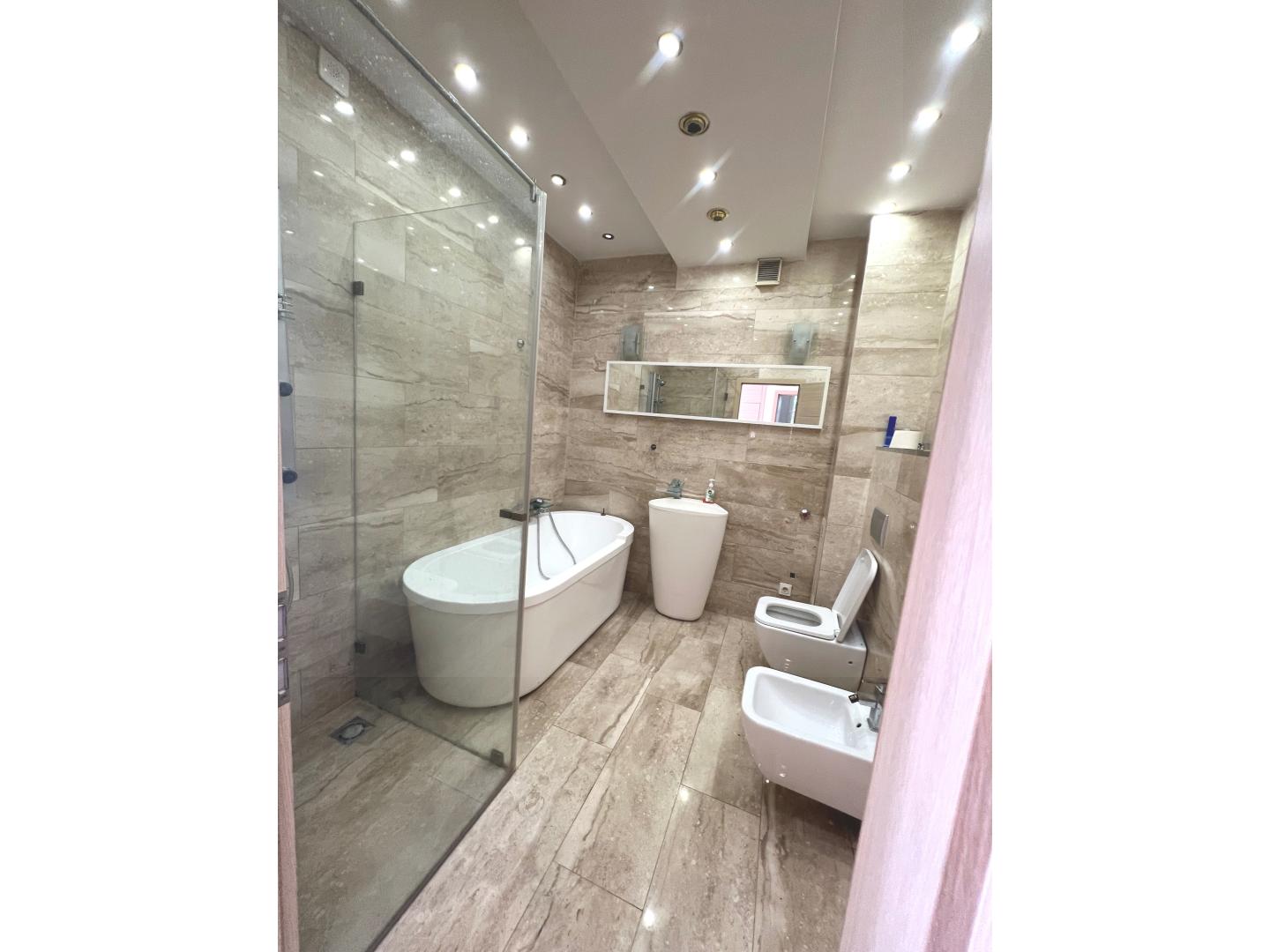 A lakás újszerű állapotú, luxus kialakítással, egyedi cirkó fűtéssel, padló- és radiátoros hőleadással, redőnyökkel felszerelt fa nyílászárókkal, biztonsági ajtóval, riasztóval, klímával.