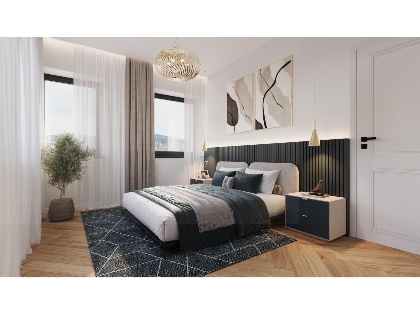 XII. kerület szívében, VIRÁNYOS könnyen megközelíthető, kiemelt zöldövezeti részén újépítésű, ALACSONY ENERGIAFELHASZNÁLÁSÚ, igényes kivitelezésű, panorámás LUXUSLAKÁSOK leköthetők! A csendes mellékutcában, panorámás, ősfás környezetben lévő 1250 nm-es telken elhelyezkedő épületben 6 lakás kerül kialakításra, szintenként két lakással. A 2026. őszére elkészülő lakások három és két hálószobás elrendezésűek, kellemes teraszkapcsolattal, a földszinti lakások saját használatú kerttel rendelkeznek. Az ingatlanfejlesztésben több mint 20 év tapasztalattal, számos referenciával rendelkező beruházó kivitelezései garantálják a minőséget és az elégedett vásárlókat. A lakások belső elrendezése a mai igényeknek megfelelő kényelmi szempontokat figyelembe véve kerül kialakításra, a lakások teljesen személyreszabhatóak, az alaprajztól a burkolatig. A legmodernebb műszaki megoldások és technológiák alkalmazása mellett az exkluzív anyaghasználat és a minőségi kivitelezés jellemzi a beruházást. Az ingatlan néhány fontosabb műszaki paramétere: központi levegő-víz rendszerű hőszivattyú biztosítja a fűtést, hűtést és a használati melegvíz-ellátást; mennyezet hűtés-fűtés, padlófűtéssel kiegészülve; okostelefonról vezérelhető, helyiségenkénti hőmérséklet szabályozás; modern, elegáns olasz dió Trespa homlokzat; három rétegű hőszigetelő üvegezésű külső nyílászárók 7 kamrás antracit SCHÜCO profillal; motoros zsaluzia okosvezérlés opcióval; prémium anyagok: olasz csempe, fafurnér parketta, Hansgrohe és Laufen szaniterek; videós kaputelefon; riasztórendszer előkészítés; platform az okosotthonhoz. Az épület alatti mélygarázsban lévő parkoló helyek (+ 12 MFt/db), felszíni beállók (+ 7 MFt/db) és tároló helyiségek is vásárolhatók. A zöldövezeti luxusingatlan csendes utcában, a XII. kerület jól megközelíthető részén kerül kialakításra, kényelmesen elérhető autóval és tömegközlekedéssel (villamos és busz) egyaránt. A közelben számos kiszolgáló egység: Budagyöngye Bevásárlóközpont, színvonalas éttermek; pékség, kávézó, élelmiszerüzlet; valamint jó nevű oktatási intézmények találhatóak. Részletes műszaki tartalmat és alaprajzokat kérésre küldünk.