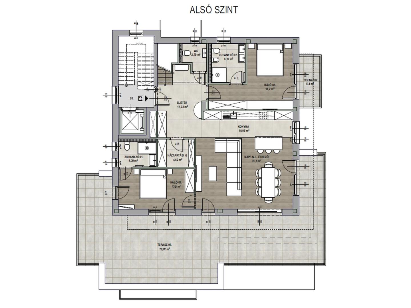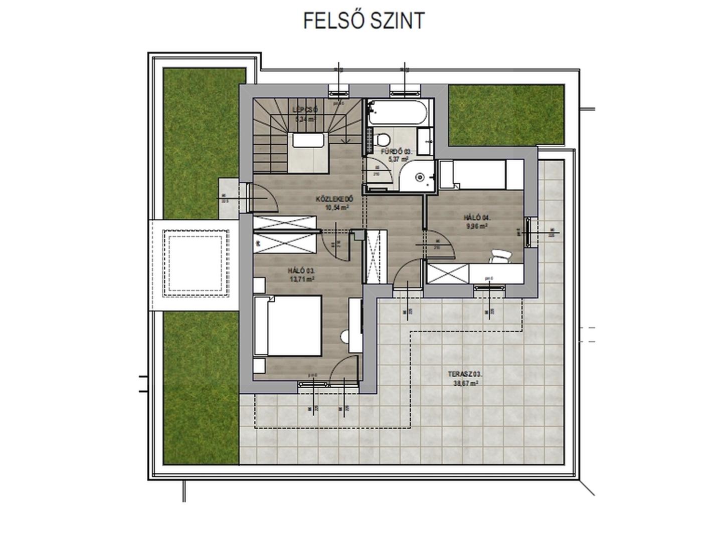 A telekhez jogerős építési engedély, kiviteli tervek és teljes belsőépítészeti tervcsomag rendelkezésre áll, Belsőépítész Stúdió által kidolgozva.