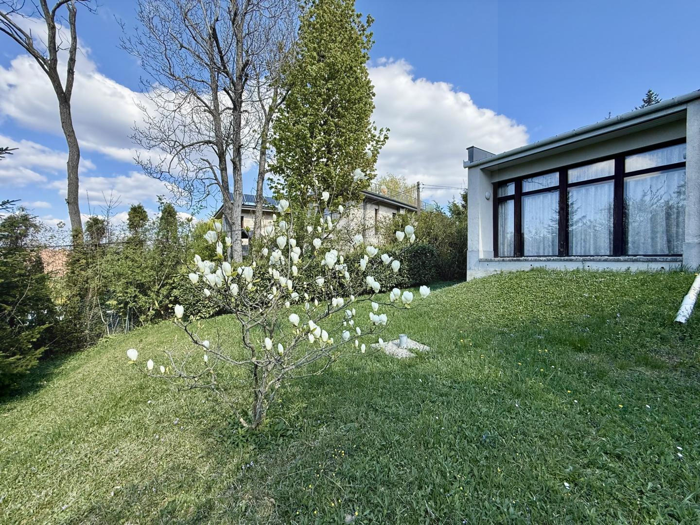 A magaslati fekvés friss levegőt biztosít, a lejtős terep pedig lehetőséget ad egy csendes, kilátásra szervezett épület kialakítására.