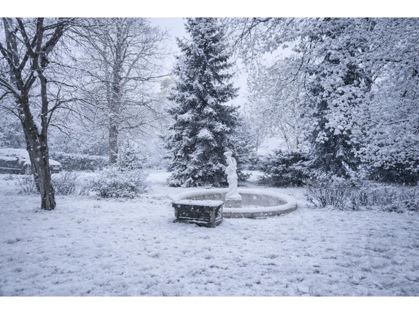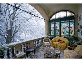 Visszatérve a szalonba, csodás látvány nyílik a parkra, melyben az eredeti szobor is megtalálható. A szalonból nyílik a három oldalról zárt terasz, melyen akár hidegebb időben is kellemes tartózkodni.