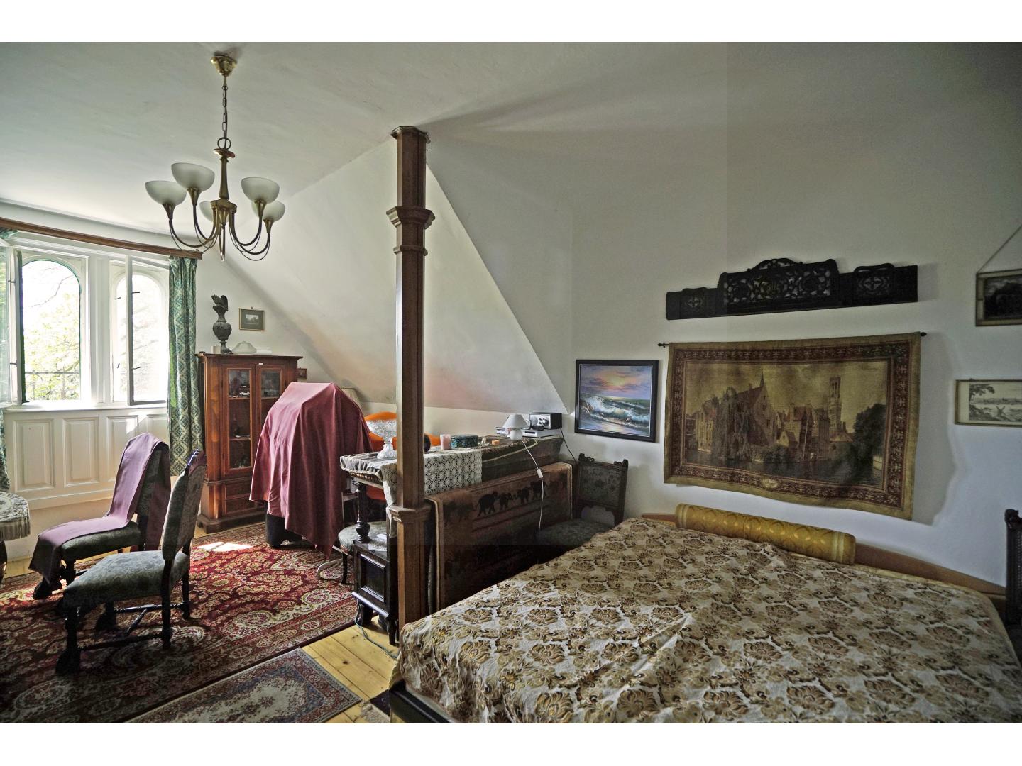 A lakószint impozáns bejárata klasszikus fogadó tér, melyből szemből nyílik a szalon. A fogadóhelyiség ablakai a már említett Róth Miksa által készített, szecessziós ornamentikát tükröző ablakok, melyek szinte életre kelnek a kinti fénytől. A lakószobák, konyha és fürdőszoba is ebből a helyiségből nyílik, illetve impozáns falépcsőn lehet felmenni a kastély korhű, nagy belmagasságú manzárdjára.
