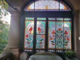 Igen ritka, hogy egy hasonló korú kastély épületnek, megmaradtak eredeti nyílászárói, melyek Róth Miksának, korának legnagyobb üvegfestmény készítő művészének műhelyéből származnak.