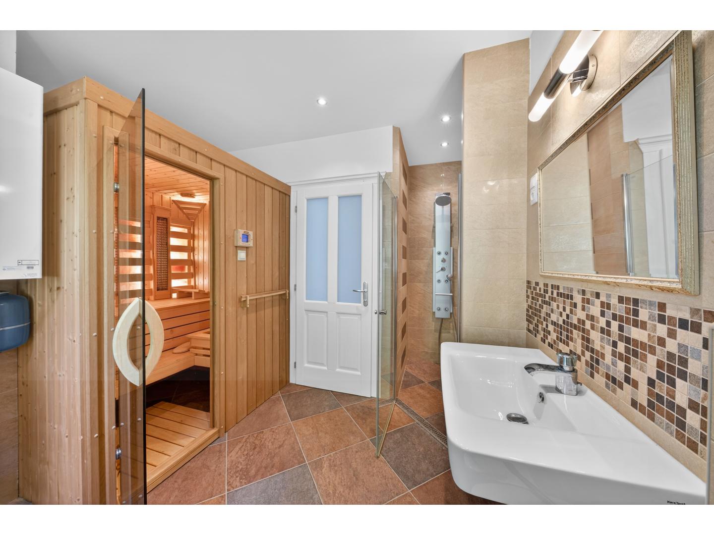 A gondozott, dísznövényekkel beültetett kertet automata öntözőrendszer ápolja. A téli hónapokban a nappali hangulatát fatüzeléses kandalló teszi még meghittebbé, míg a finn- és infraszauna a teljes kikapcsolódás élményét kínálja.