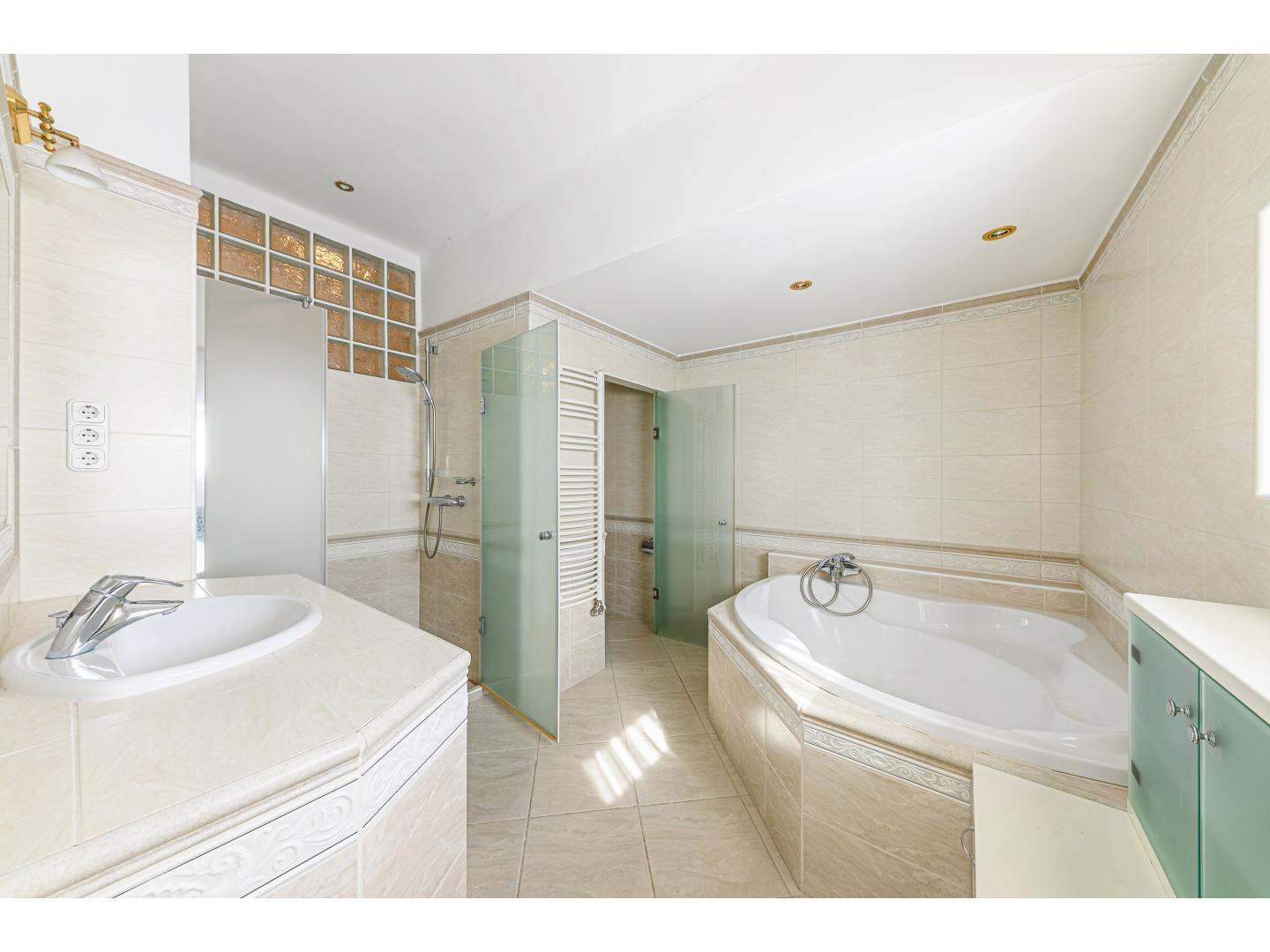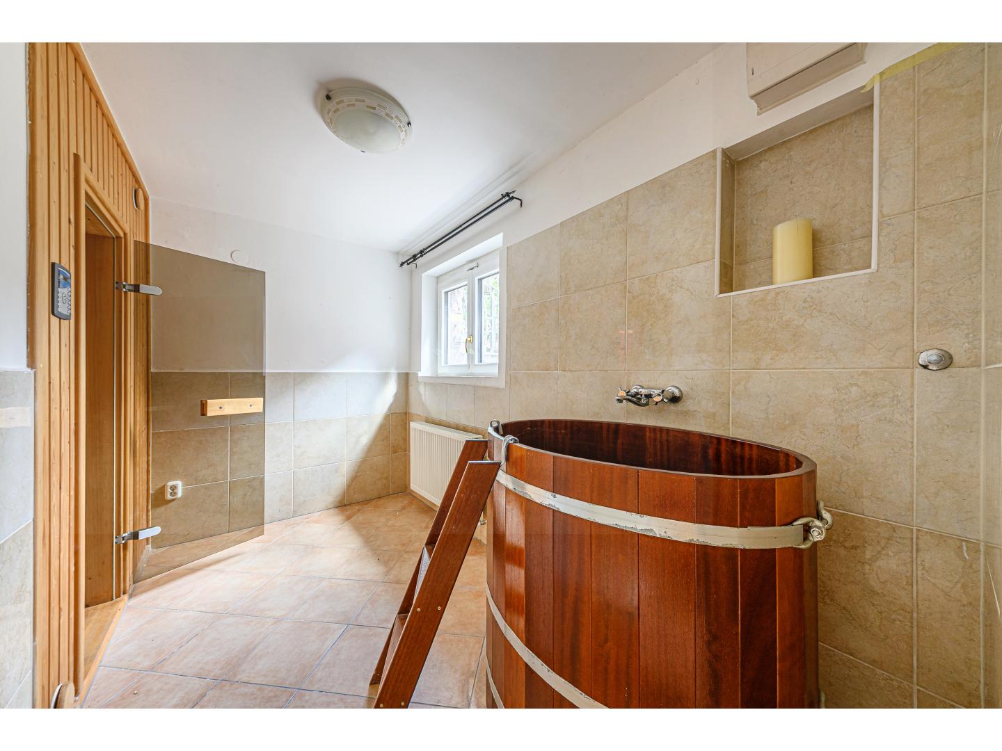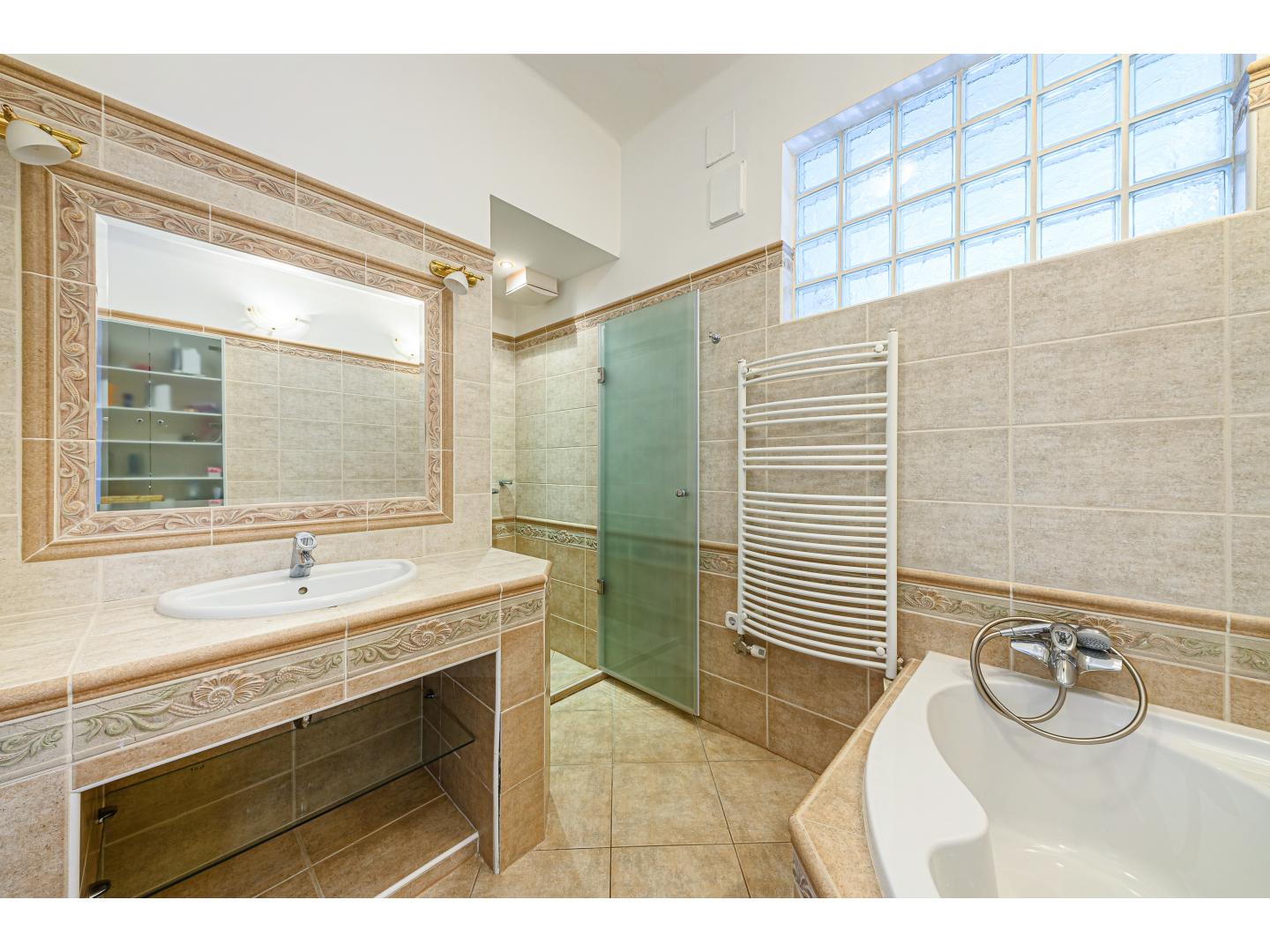 Az emeleti szinten egy tágas előtérből nyílik a 4 hálószoba, melyből a szülői lakosztály 37 négyzetméteres, saját fürdőszobával és erkéllyel rendelkezik, a további 3 hálószoba is rendkívül tágas, jó méretűek (28, 25, 15) és az egyiknek csodálatos panorámájú erkélye van a város felé. Ezen a szinten találunk még egy családi fürdőszobát.