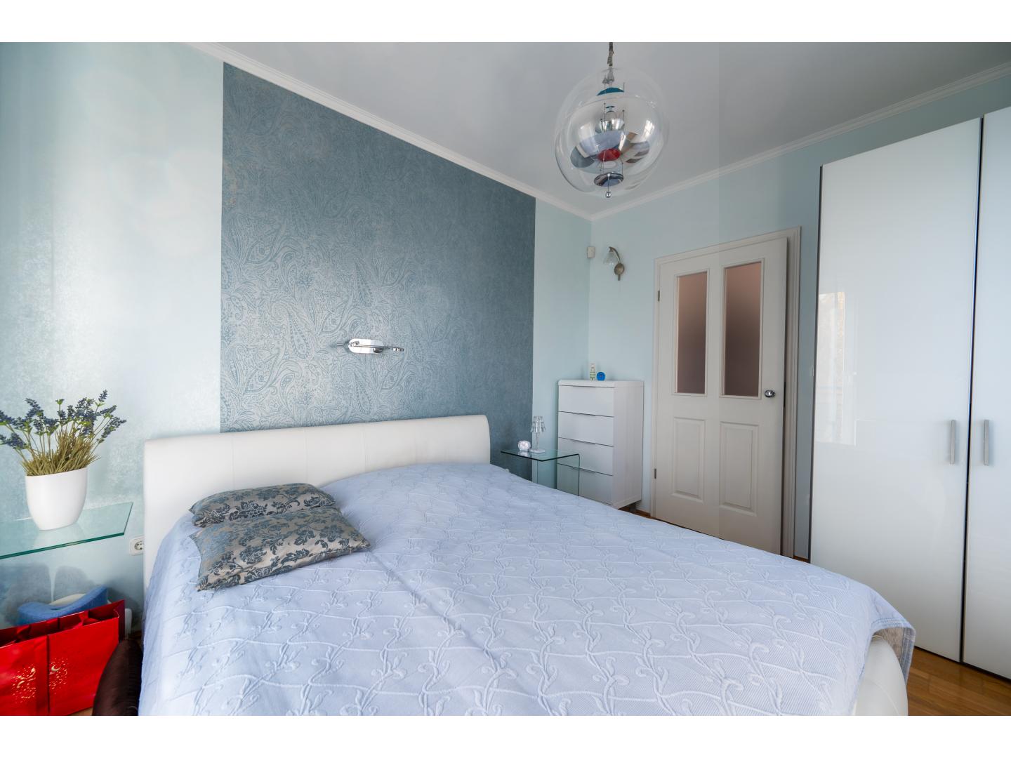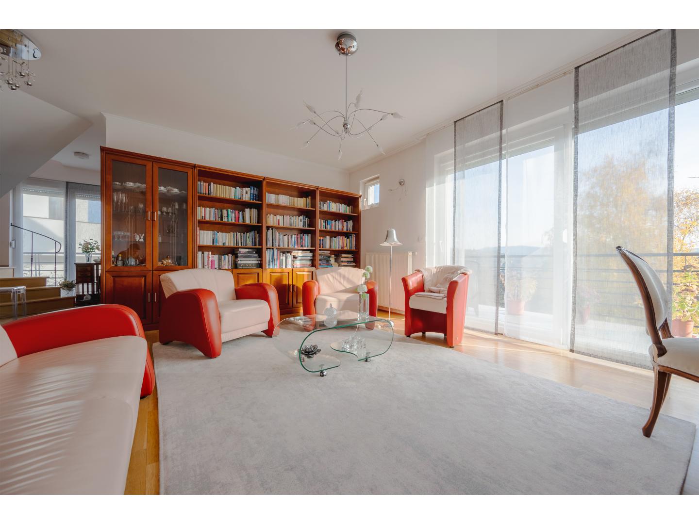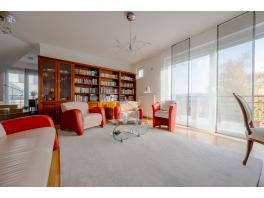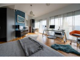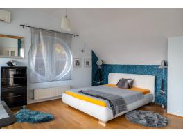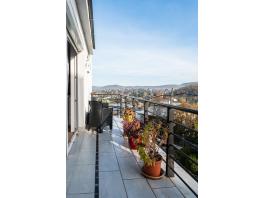 A belső kétszintes lakás alsó szintjén helyezkedik el a tágas, panorámás erkély kapcsolatos nappali, étkező, amerikai konyha, egy elegáns fürdőszoba és egy hálószoba, a felső szinten további két hálószoba és egy fürdőszoba található. Az igényesen kivitelezett lakás a folyamatos karbantartásnak köszönhetően kifogástalan műszaki állapotban van, gyakorlatilag azonnal költözhető. A kétszintes kialakításból adódóan jól szeparálható a két élettér, ráadásul a felső szint közvetlenül a lépcsőházból is elérhető. Így akár két generáció zavartalan együttélését is képes biztosítani. A lakáshoz tartozó csodálatos panorámával rendelkező erkélyek méretéből adódóan jól kihasználhatók, ideális helyszínül szolgálnak a reggel kávézáshoz, családi, baráti összejövetelekhez, grillezéshez.