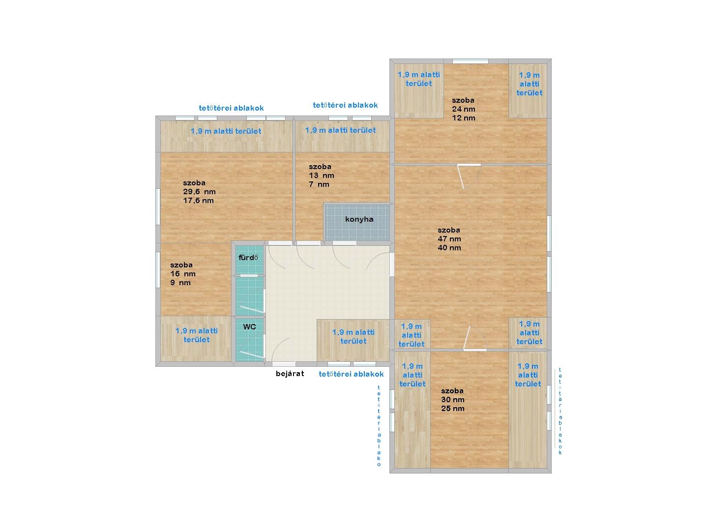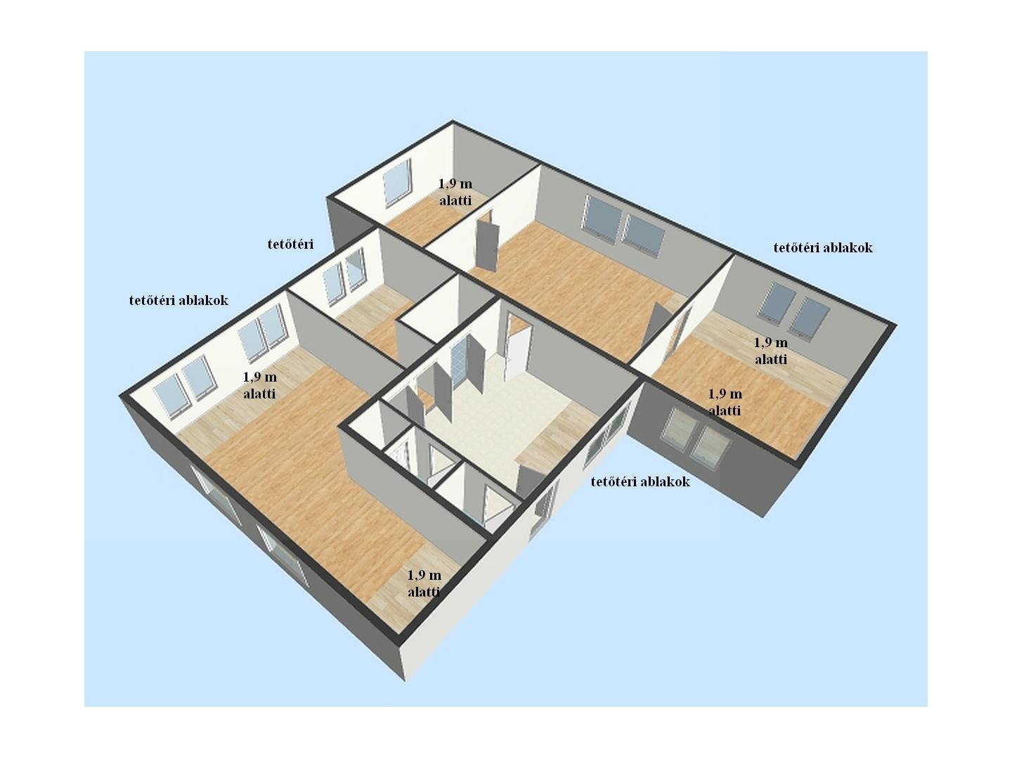 Az ingatlan rendkívül sok lehetőséget rejt magában: egy kisebb átalakítással akár zárt vagy amerikai konyhás nappali is kialakítható, miközben 3-4 hálószoba továbbra is kényelmesen elfér benne.