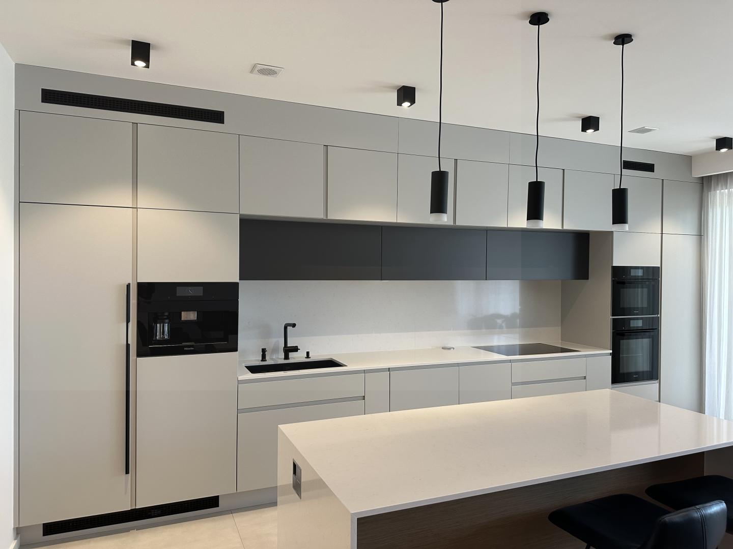 A fürdőszobákban Villeroy&Boch szaniterek és Hansgrohe szerelvények, míg a konyhában teljes Miele gépsor található – sütő, gőzpároló, kávégép, főzőlap, mikrohullámú sütő, mosogatógép, hűtő és fagyasztó. A lakás teljesen berendezve eladó: Natuzzi ülőgarnitúra, Leolux bútorok, Bonaldo étkezőasztal, Rolf Benz dohányzóasztal, Jacaranda szőnyegek, MESH csillár és SLV lámpatestek teszik teljessé az enteriőrt.