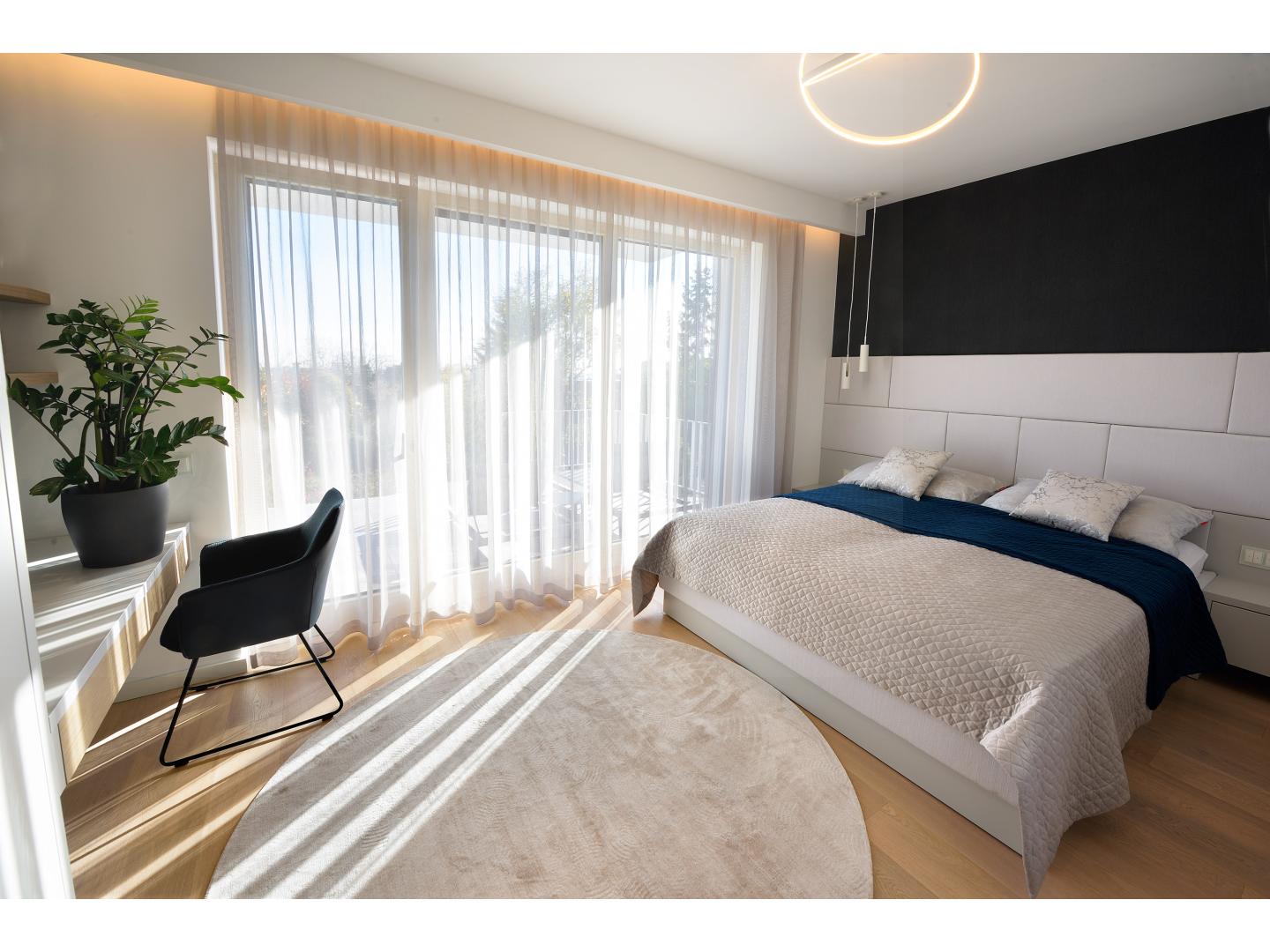 Két hálószoba, egy dolgozószoba, két elegáns fürdőszoba, háztartási helyiség és külön vendégmosdó teszi teljessé a funkcionalitást.
