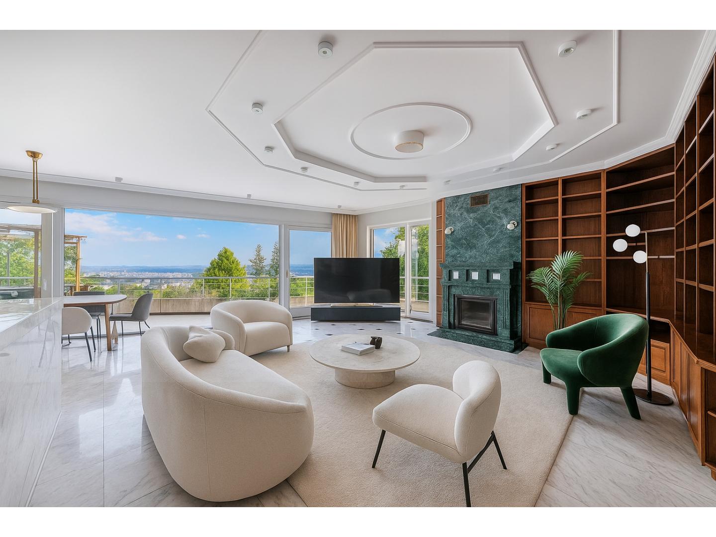 XII. kerület legszebb és legkeresettebb, a város irányában egyedülálló panorámával rendelkező részén a Hangya utcában, gyönyörű villák, új építésű luxuslakások szomszédságában található három lakásos társasház teljes középső szintjét elfoglaló, egyszintes, elegáns térhasználattal megálmodott 3 m-es belmagassággal rendelkező kiváló adottságú lakása.