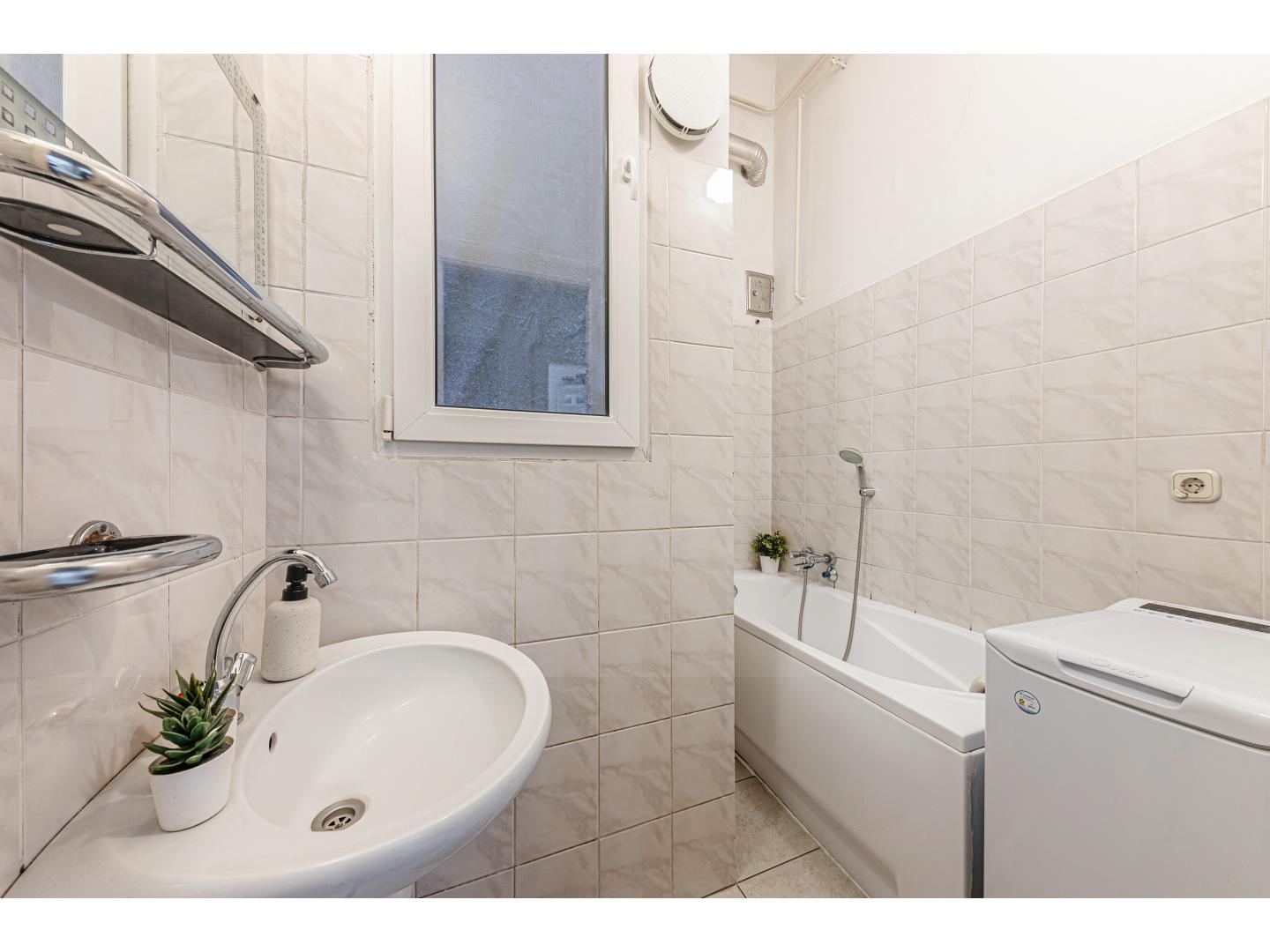 Az ingatlan részleges felújításon esett át: korszerű, redőnyös műanyag ablakok, légkondicionáló berendezés, többpontos biztonsági bejárati ajtó és bélelt kémény járulnak hozzá a komforthoz. A lokáció minősége azonban önmagában is értéket képvisel: néhány lépésre több buszjárat és a villamosok megállói, pár percnyi sétára pedig a MOM Bevásárló- és Szórakoztatóközpont kínál teljes körű szolgáltatást.