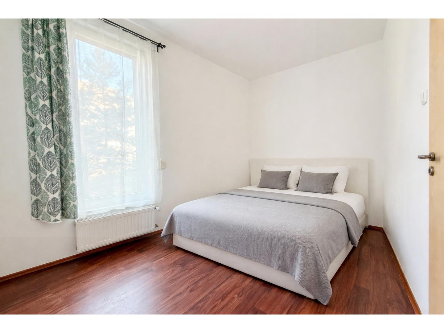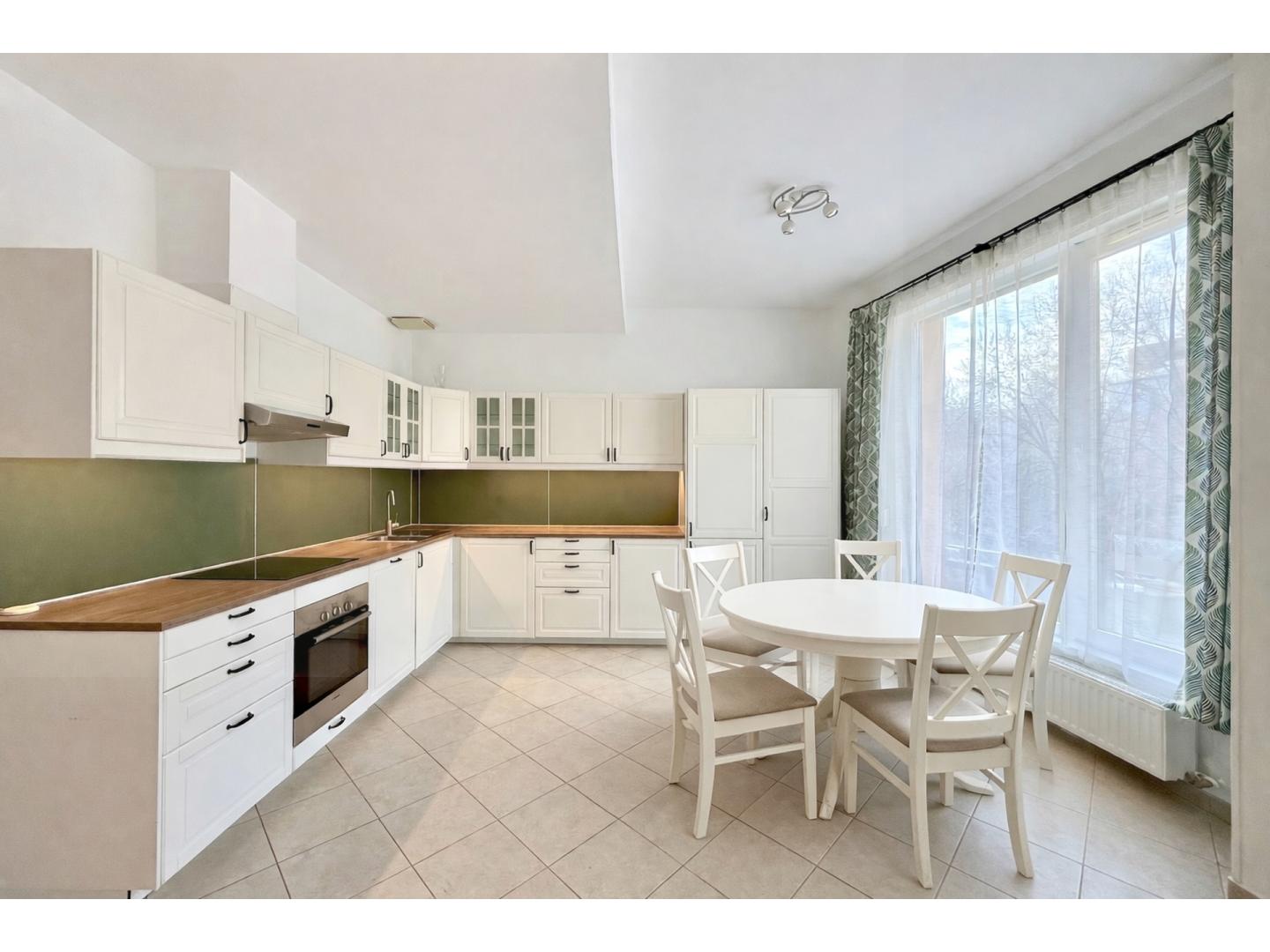 A lakás konyhája tört fehér, klasszikus, provanszi stílusú konyhabútorral és konyhagépekkel felszerelt. Mivel a nappali déli fekvésű, ezért a nyári melegben légkondíciónáló áll rendelkezésre, amivel kellemesebbé tehetjük a belső hőmérsékletet. Az ingatlan majdnem 3 méteres belmagassága kifejezetten növeli a tágasság érzetét.A fürdőszoba méretéből adódóan lehetőség van a jelenlegi zuhanyzó helyére, igény szerint kádat beépíteni. A reggeli és esti készülődést megkönnyíti, hogy nemcsak a fürdőszoba rendelkezik wc-vel, hanem egy külön wc is kialakításra került a lakásban. A folyamatos karbantartásnak köszönhetően a lakás jó állapotú, akár azonnal költözhető. A társasházat körülvevő utcákban nincsen átmenő forgalom, emiatt a lakás kifejezetten csendes. Az ablakokon beépített szúnyogháló, redőnyök, az erkélyen motoros árnyékoló került beépítésre.