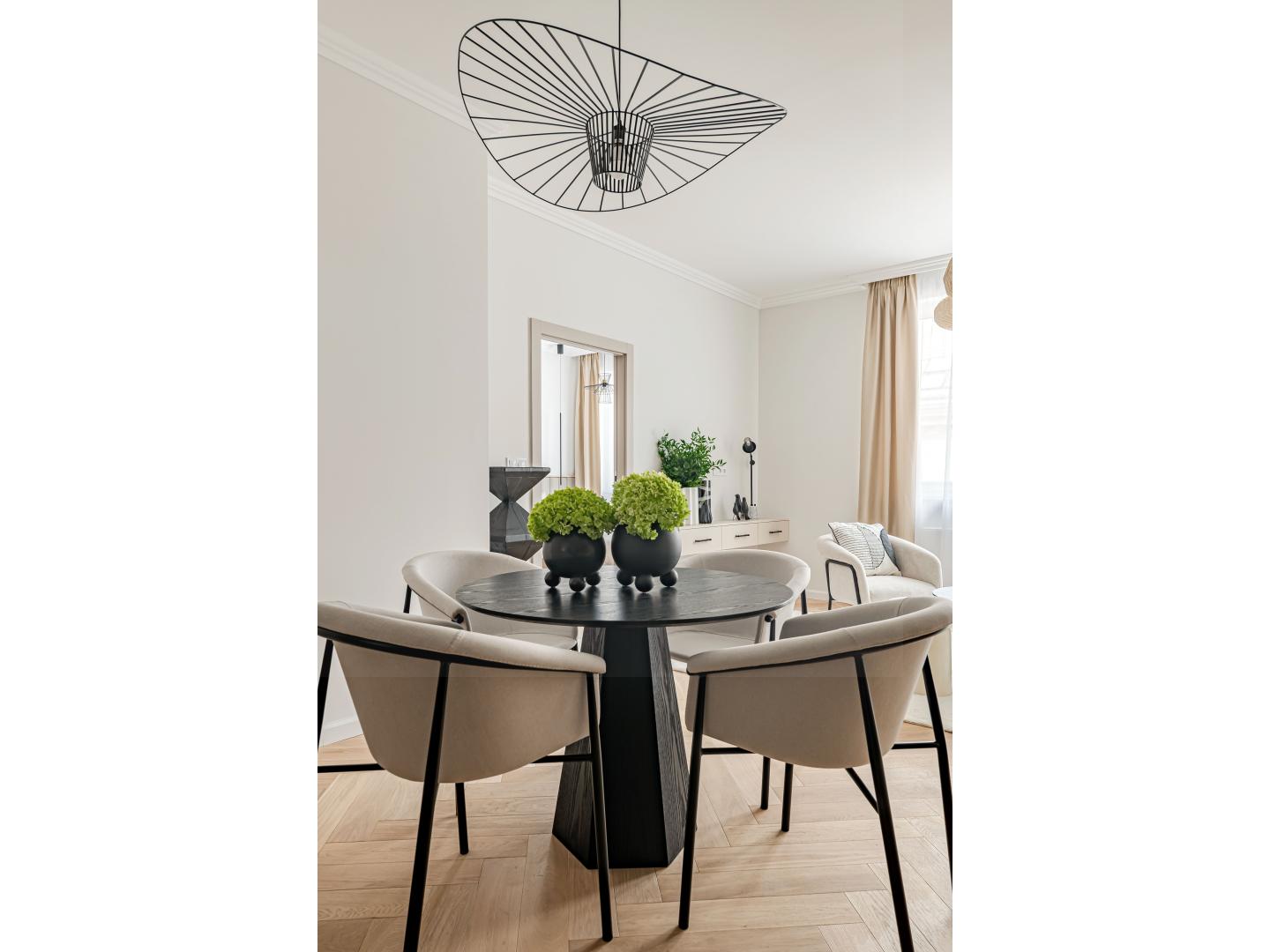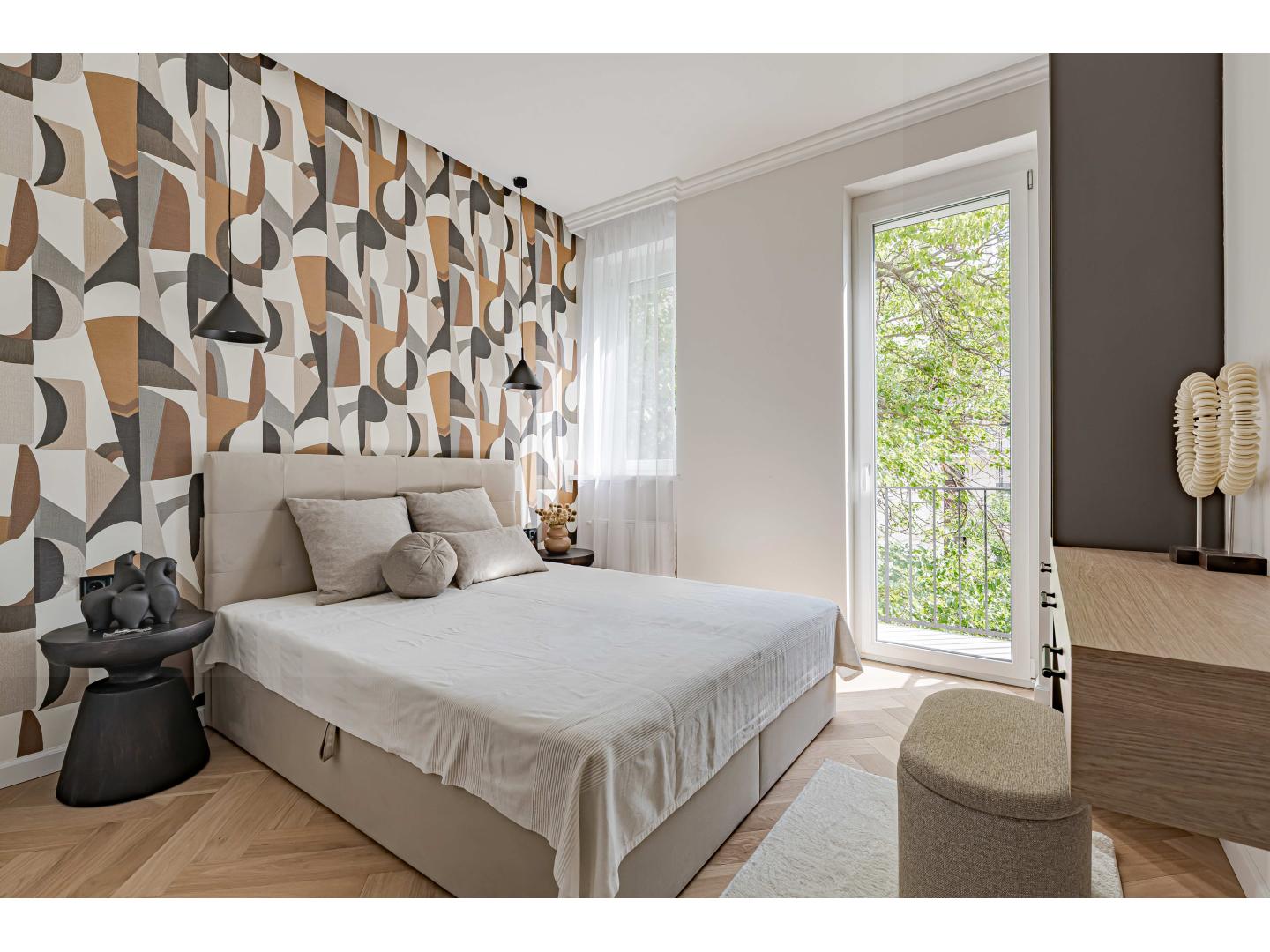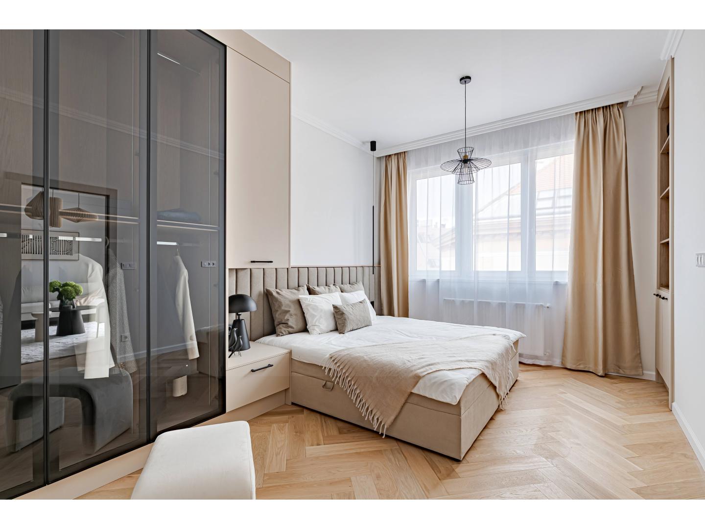 A lakás teljeskörű felújítása során, nemcsak a gépészet és a villamos hálózat teljes cseréje történt meg, elegáns belső ajtók kerültek beépítésre, hanem a falak áthelyezésével, egy, a mai kor igényeinek megfelelő, praktikus térrendezés született, nappali, 3 hálószobával és 2 fürdőszobával.