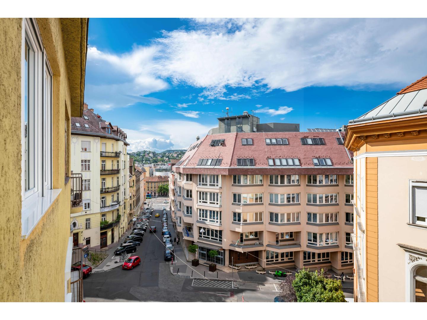 A teljes külső nyílászáró cserének köszönhetően, 3 rétegű hang-és hőszigetelt ajtók és ablakok, redőnyök beépítésével a tulajdonosok zavartalan pihenése biztosított. A legfelső emeleti elhelyezkedés, a nagy belmagasság és a szinte teljes szintet átölelő mérete révén a lakás rendkívül világos minden napszakban. Az utca emelkedéséből adódóan pedig a lakás erkélyéről szép kilátás nyílik a budai hegyekre.