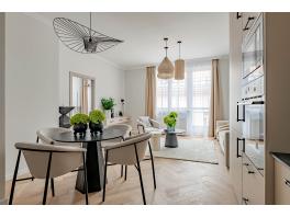 I.kerület kiemelt részén, séta távolságra a Budai Vártól, egy 8 lakásos Bauhaus stílusú épület legfelső szintjén, eladó, egy prémium minőségben felújított 90 négyzetméteres, negyedik emeleti, 2 erkélyes lakás, melynek letisztult stílusa, harmonikus, visszafogott pasztell színárnyalatai egyszerre kínálják a körülölelő otthonosság és luxus életérzését.