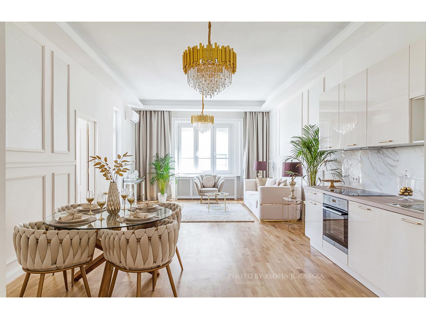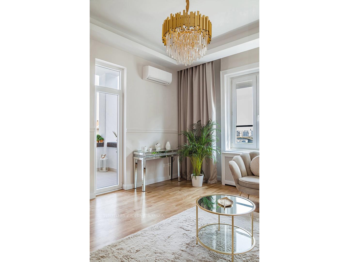 A prémium színvonalon, TELJESKÖRŰEN FELÚJÍTOTT, rendkívül igényes, 91 nm-es, erkélyes lakás egy folyamatosan karbantartott, jó lakóközösségű, BAUHAUS stílusú épület 4. emeletén helyezkedik el.