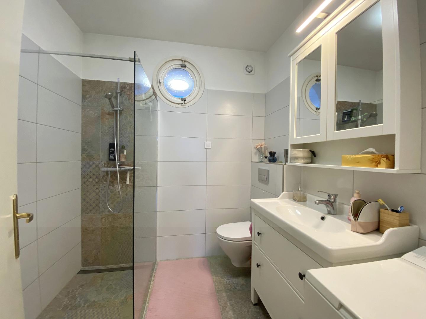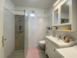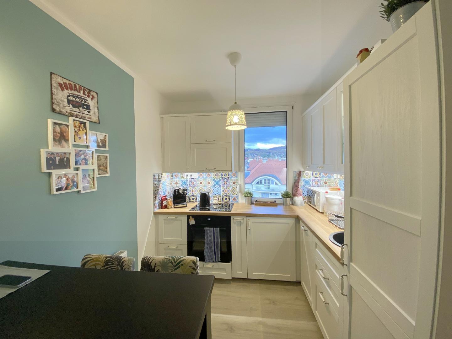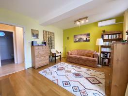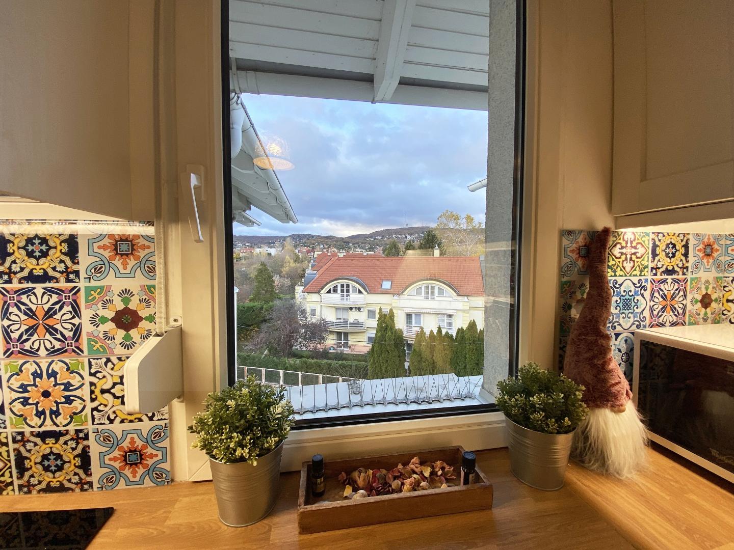 A nappali 6 nm-es teraszra nyílik, amely még a délutáni csúcs idején is szinte zajmentes. A hálószoba szintén garantálja a nyugalmat, a jó pihenést, a hatalmas, esztétikus beépített szekrénybe jelentős mennyiségű ruhát és miegymást pakolhatunk. Az étkezős konyha minden igényt kielégít, indukciós főzőlap, kivezetett szagelszívó, mosogatógép, fagyasztós hűtő, a konyhaablakból panoráma(!), amelyet az étkezőasztaltól is élvezhetünk. Zuhanyzós, igényes fürdő, mosógép. A közlekedő végén kamra található. Házközponti fűtés, amelyet a nappaliból vezérelhetünk, a hűtő-fűtő klímával finomhangolhatjuk a hőmérsékletet. Minden ablakon redőny, a hálószobain szúnyogháló.